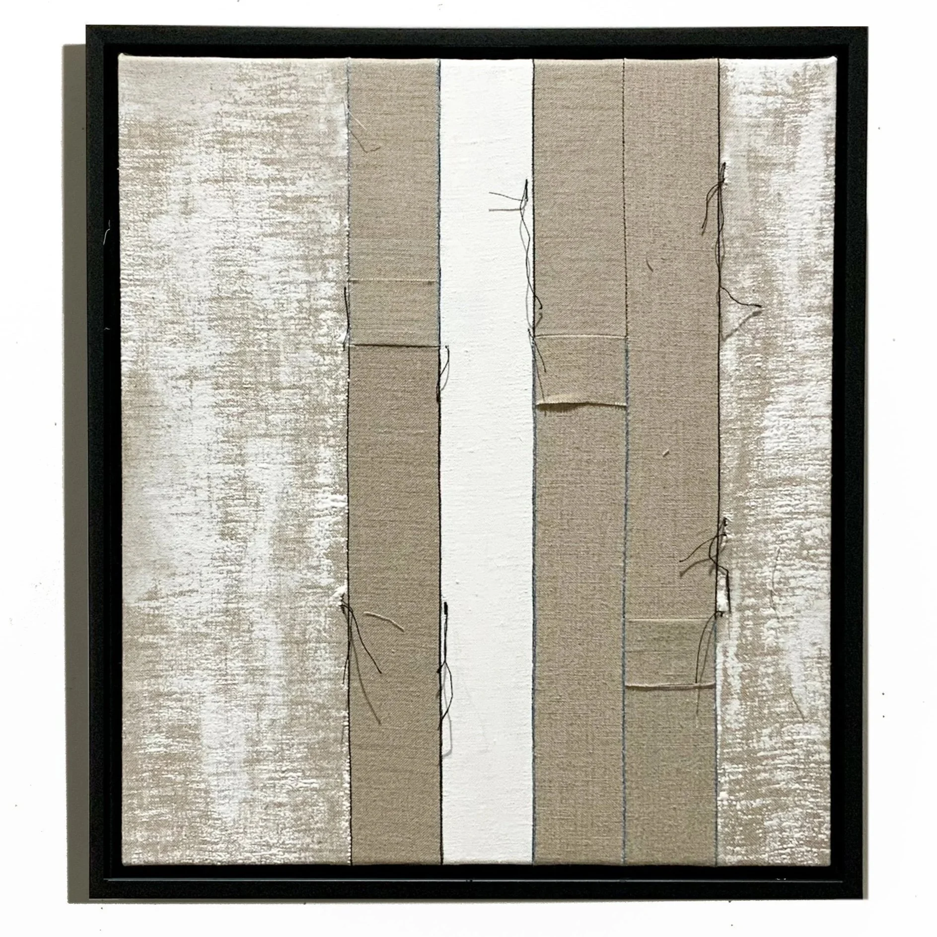 Concept: The concept for the Ostinato series is borrowed from music theory, where it describes a portion of music that repeats the same rhythm or melodic element and acts as the foundation for exploration. The series begins with a standard structure, which forms the basis for each of the individual pieces. Each is subsequently constructed with slight variation on the original pattern achieved through mirrored and rotational symmetry and systematic subtle disruption of basic form and stitch.